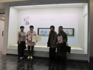 表彰式に出席できなかったありがとう大賞(一般の部B部門)の受賞者、香川ひとみさんが香川県から来館されました。受賞作品に描かれた旅行仲間の友人たちと一緒に記念撮影。作品を見た仲間からは「似てる~」という言葉が飛び交い、作品から感じる和やかな雰囲気そのままでした。