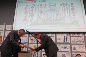 11月22日(土)に一般の部の表彰交流会を開催しました。地元、広島はもちろん遠くは、山形県や茨城県など県外からも多くの方が出席されました。表彰式の終了後は、入賞者本人による作品解説や裏話も聞くことができました。